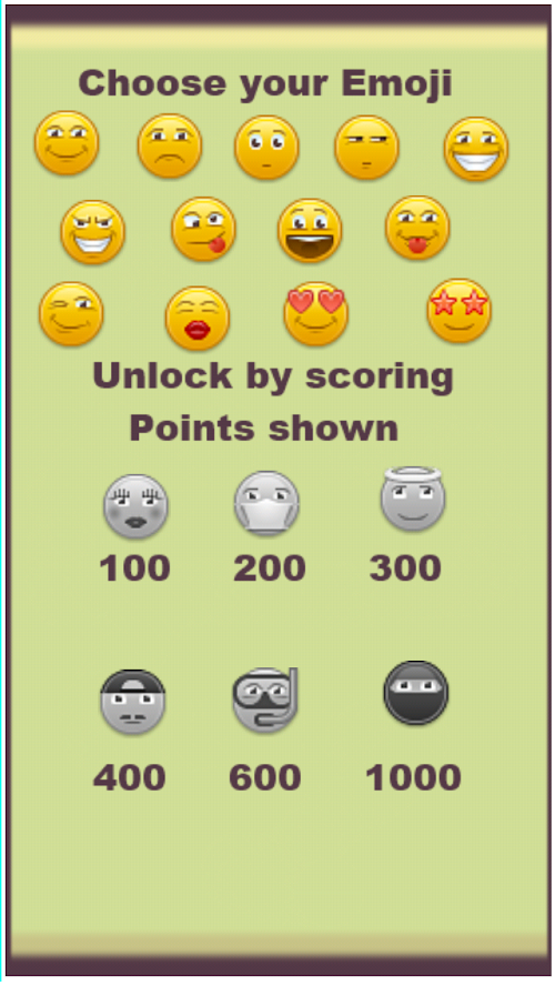 Pick from 13 Emojis,and score high to add more to your selection