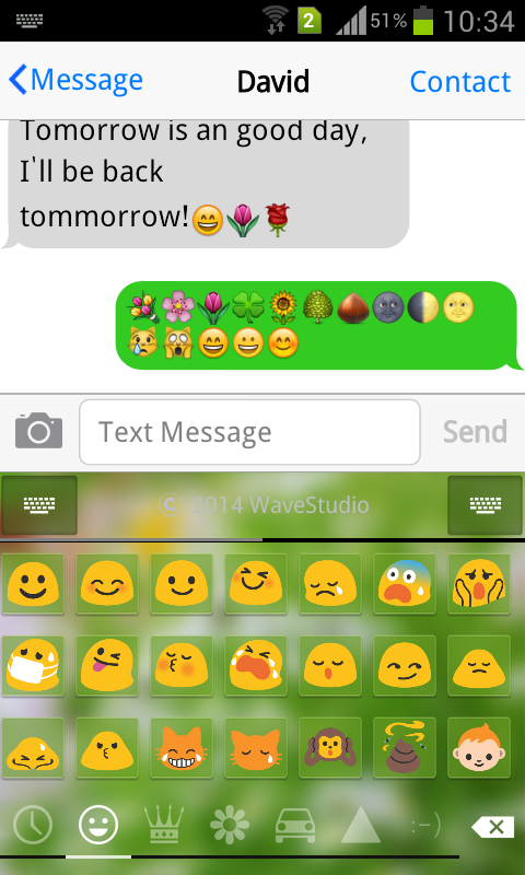 Fresh Green Theme for Emoji Keyboard+: http://goo.gl/bk23s2 , designed by WaveStudio, Getting this cool theme to make your Emoji Keyboard+ more lovely and colorful.
