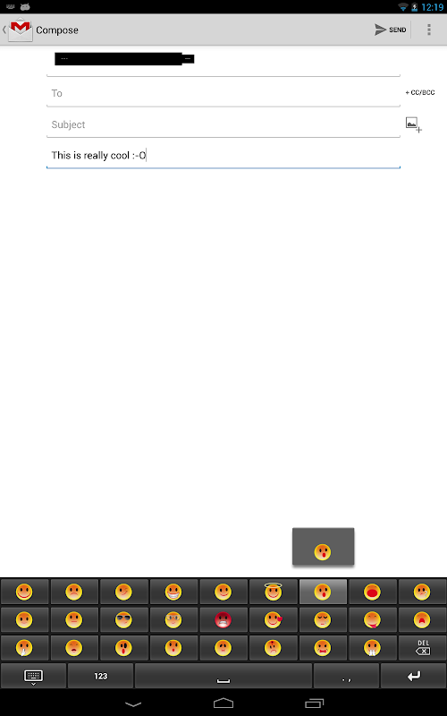 Put some emotion into your SMS and emails for free! Emoji Keyboard is a free app for Android. Emoji Keyboard helps you add several different emotions to your email and text. So go ahead and express yourself. It is free, all you need is your imagination and your Android phone or tablet.
