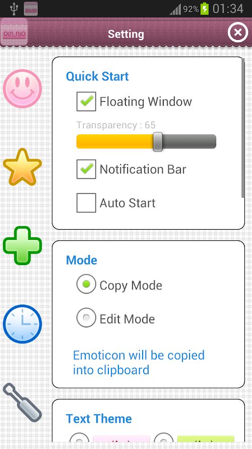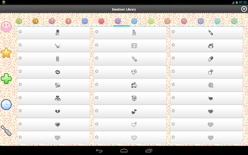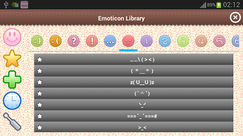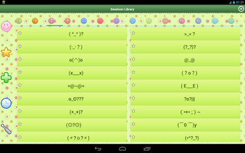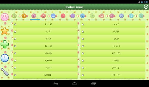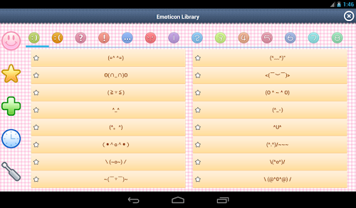 Emoticon Emoji Symbol Cute works like a part of your current using apps(sms ,mail ,facebook or any other) ,you don't need exit current using app when you need copy an emoticon.
