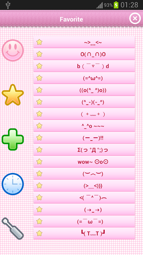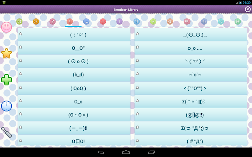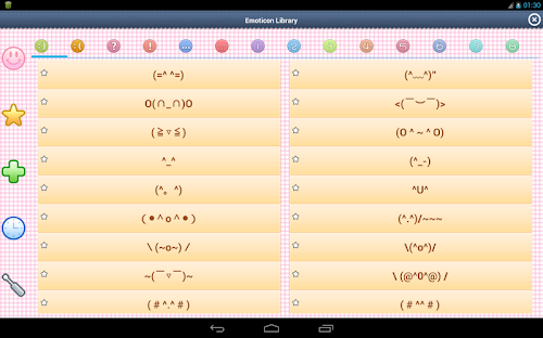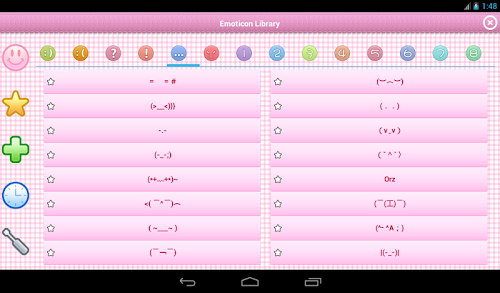 This is the most easy and convenient app which help you inputting text emoticon , you can copy text emoticon by one click and paste it to anywhere you want(sms, mail, facebook, twitter, whats app, KakaoTalk, wechat and so on).