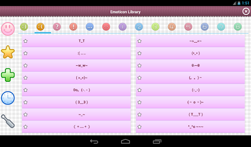 ★ Several hundreds emoticons ,sorted in six category :happy/sad/curious/angry/surprise/I don't care