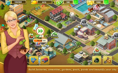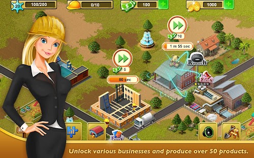 Your distant relative has left you a few acres of land and an abandoned factory. Repair the factory and take charge of the operations. Begin your business with one factory and build your billion dollar business empire by growing it with best tactics. Produce various products from fruit juices to Gold jewelry to Tea, coffee plantation. Invest wisely in stocks and get more money to finance newer businesses. Build factories, manufacture products and sell them to gain profit, fulfill customer’s orders, customize your world, grow your virtual town.