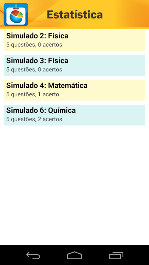 4) Ao final de cada simulado, o aplicativo mostra uma estatística de quantas questões você acertou e errou. Assim, você pode acompanhar seu progresso nos estudos facilmente e ver qual matéria você precisa se dedicar mais para passar no vestibular.