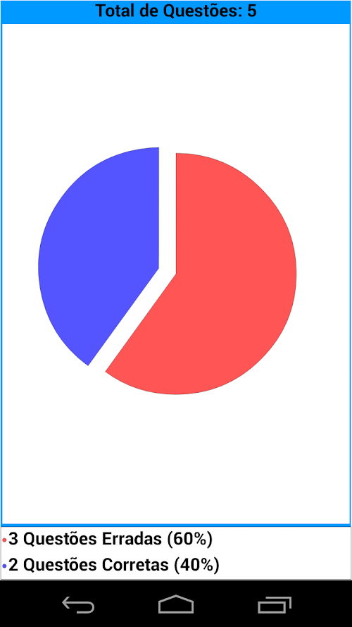 4) At the end of each simulation, the application shows a statistic of how many questions you hit and missed. So you can track your progress in studies and easily see which matter you have to spend more to pass the entrance exam.