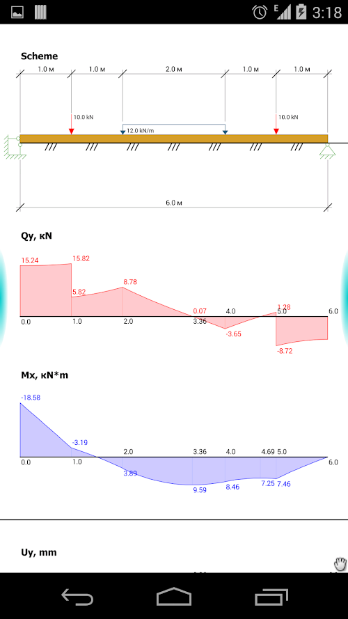 - Calculation and graphical plotting diagrams of shear forces and bending moments ;