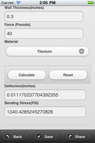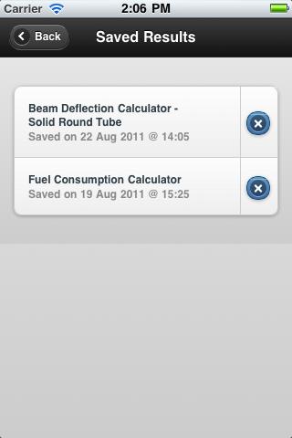 Special features include the ability to save calculated results, and the ability to share calculated results (for example, with classmates via email).