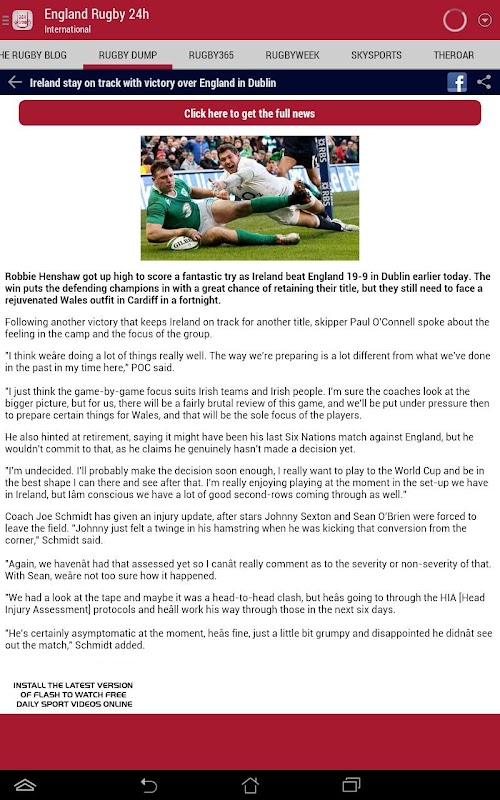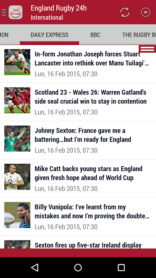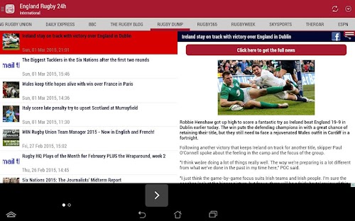 Simply the best! England Rugby 24h mashes up news from newspapers and web portals in a single app!