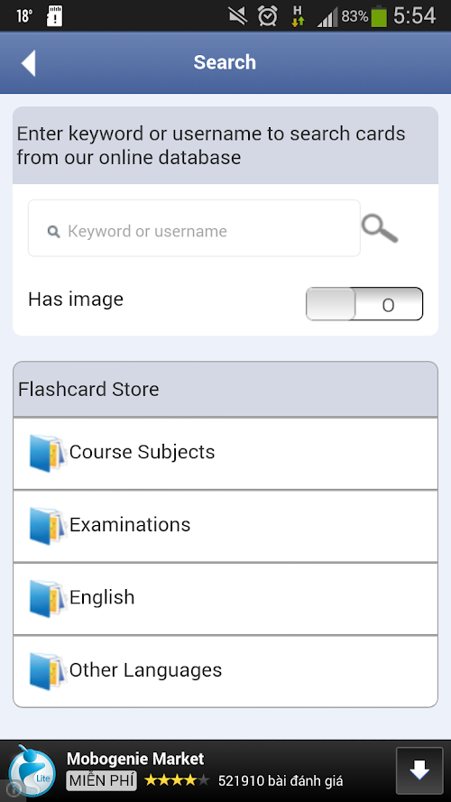 • Search cardsets from our database with millions of flashcards on various subjects.