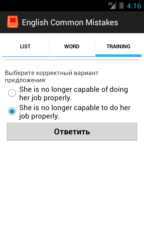 This version of English Common Mistakes Free Android App comes with one universal variant which will work on all the Android devices.