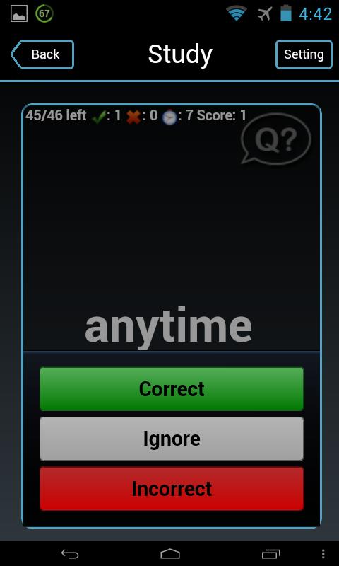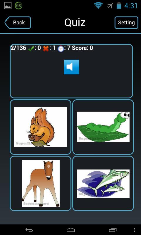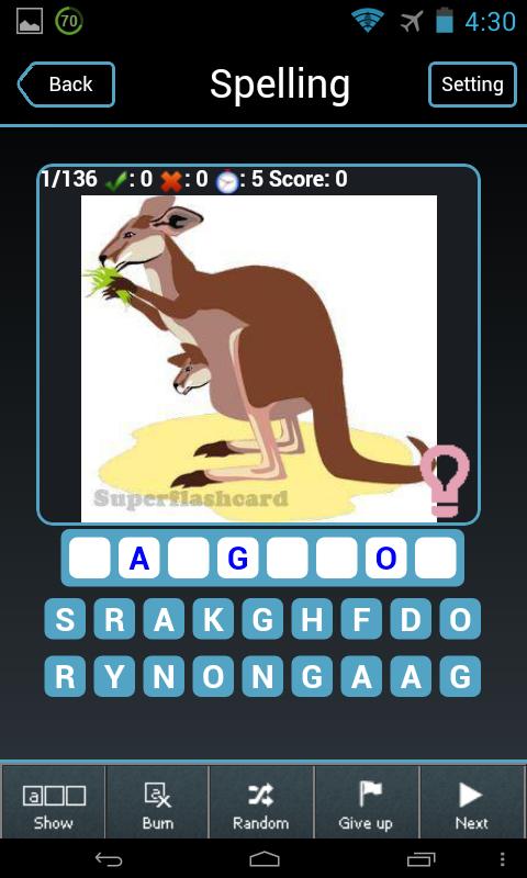 English vocabulary flashcards to help you study English vocabulary including images and sounds. Each English vocabulary flashcards includes example sentence or definition to help to understand how to use the English vocabulary. Make your English learning being fun with games including matching, spelling memorize and quiz.