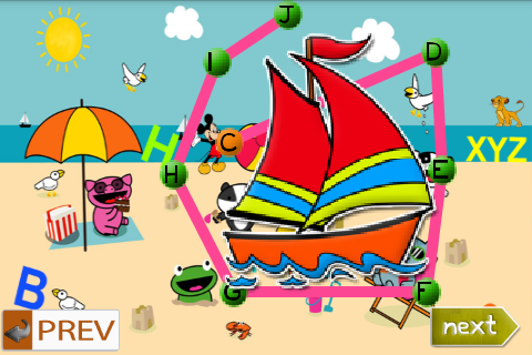 Kids learn to write alphabets easily by connecting dots. The program contains 10 images that ask kids to complete the image by connecting dots.