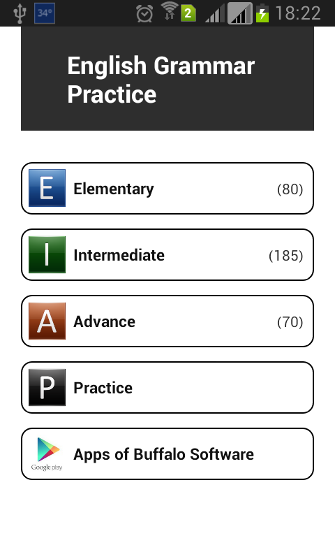 This is pro version of English grammar practice app. It includes 3350 grammar exercises at three levels (beginner, intermediate , advanced) and is divided into different subjects of life.