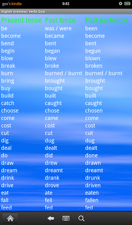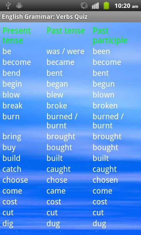 Learn commonly used English regular and irregular verbs and improve your skills with this quiz game.