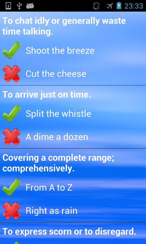 If you are looking to download other versions of English Idioms Quiz Android App, We have 1 version in our database. Please select one of them below to download.