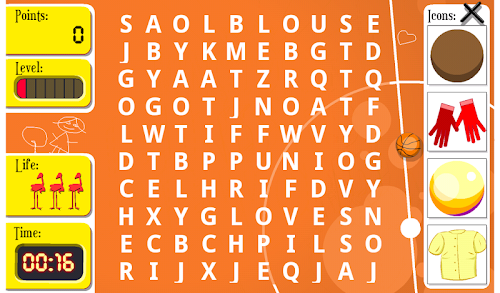 Crossword puzzle where you must find the words in the maze of letters. They may be hiding horizontally, vertically or diagonally.