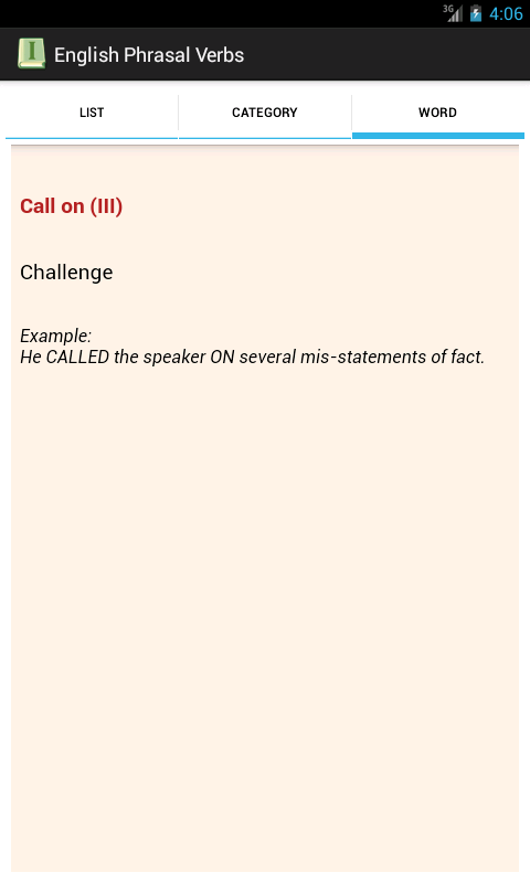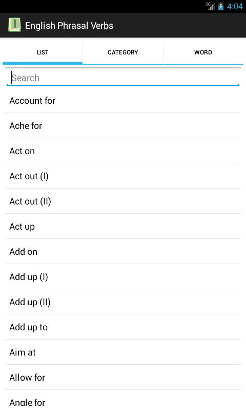 Application сontains about 3000 English (British and American) Phrasal Verbs (also called multi-word verbs) with definitions and examples.