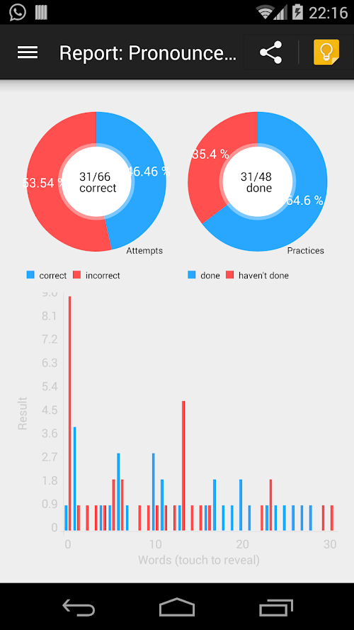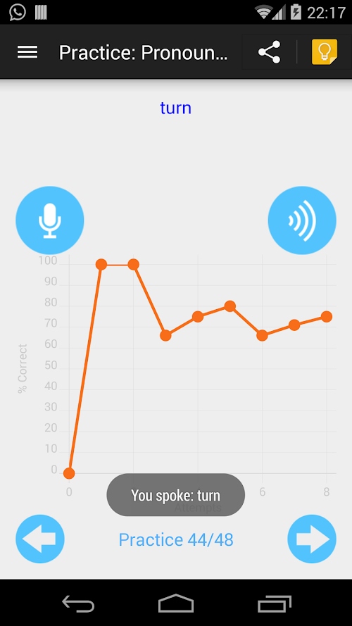 * You can tap on the words in practice area to hear the correct pronunciation of that word