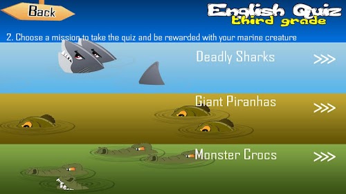 In addition, the quiz format has also been given an extreme make-over. There are 3 different themes that the quiz is based on. The themes are the "Deadly Sharks", "Monster Crocs" and the "Giant Piranhas". The different themes, interactivity and animation of the quizzes aim to provide a fun and engaging learning environment for the young learner to enjoy the learning process.