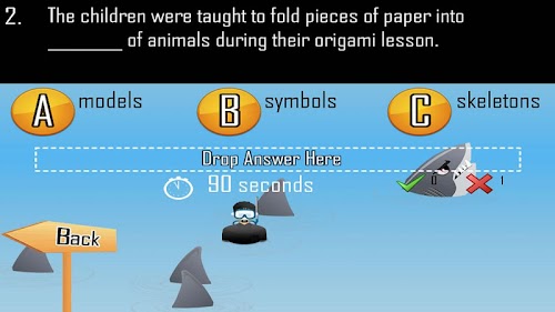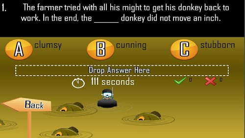 There are a total of 300 high quality English questions that are distributed randomly over 10 different Marine animals. The main aim of the app is to encourage the learner to attempt each set of the quiz so that he can collect each of the 15 marine animals in order to populate his very own 3D Oceania. The adult or teacher can adjust the level of difficulties such as the quiz duration/passing score to cater to the varying needs of the learner. The marine animals serve as a source of motivation and end goals to encourage the young learner to keep on practicing the quizzes.