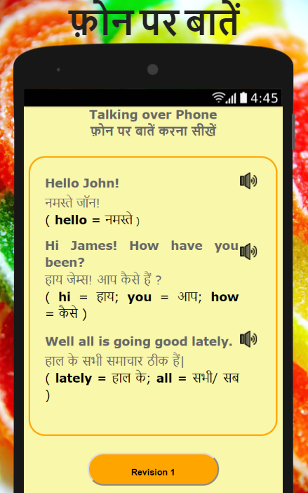 This revised version of Hindi to English Speaking Application is intended to improve the quality of this app. Learning English using Hindi will become simple and unique. This new version will be free as well as with offline feature. This application provides the required features and teaches English in a step by step manner. We have invested the efforts to enrich the user experience with this new version of English Speaking application that teaches English from Hindi language.