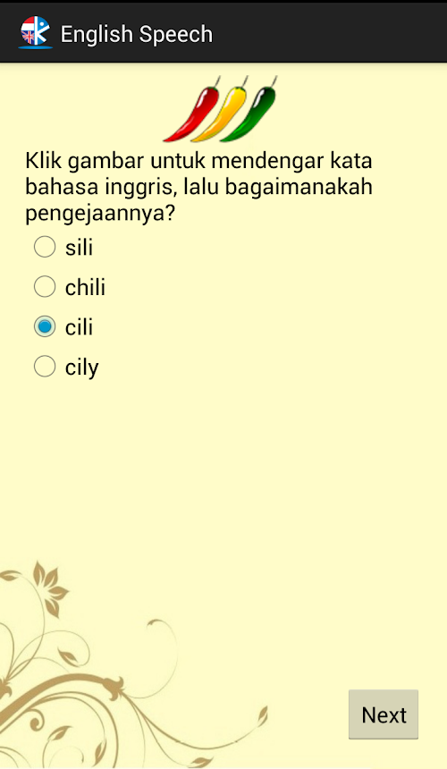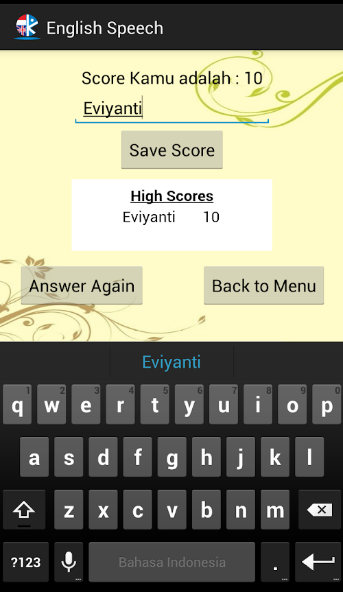 Aplikasi Tes Bahasa Inggris yang memungkinkan anda dapat melakukan pembelajaran kata atau cara baca dalam bahasa inggrisEnglish Test application that allows you can do or how to read word learning in English