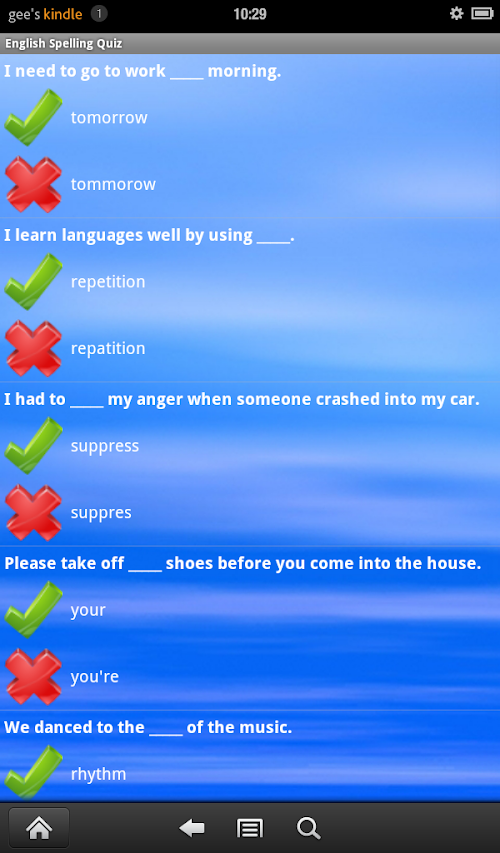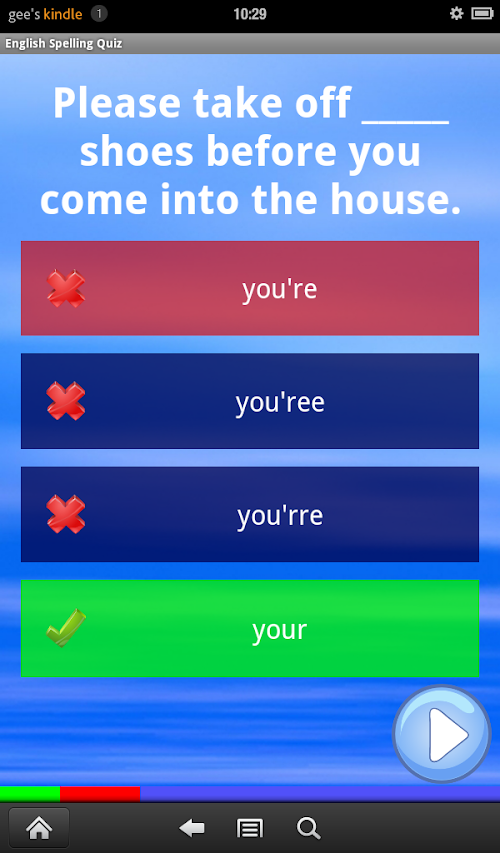 ✔ Two different spelling games to play: quiz game and play against the clock!