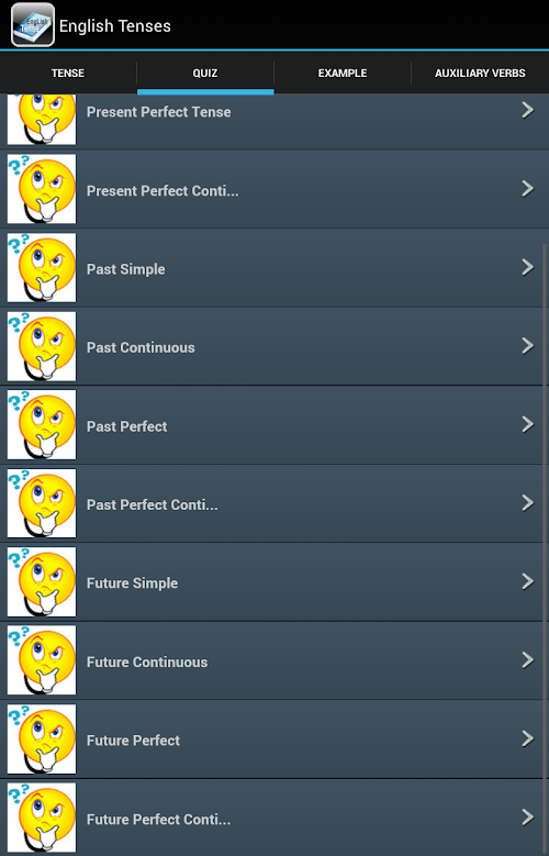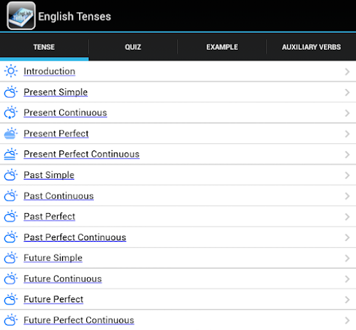 All the English Tenses topics in this app are covered in depth and in a most simple way.