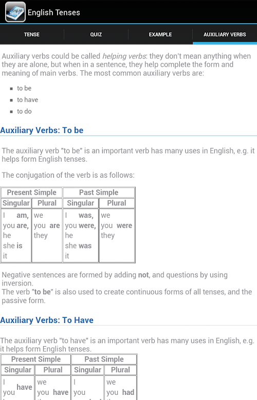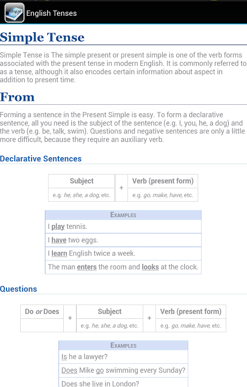 Free App English Tense Tutorial. Excellent resource for students and teachers.