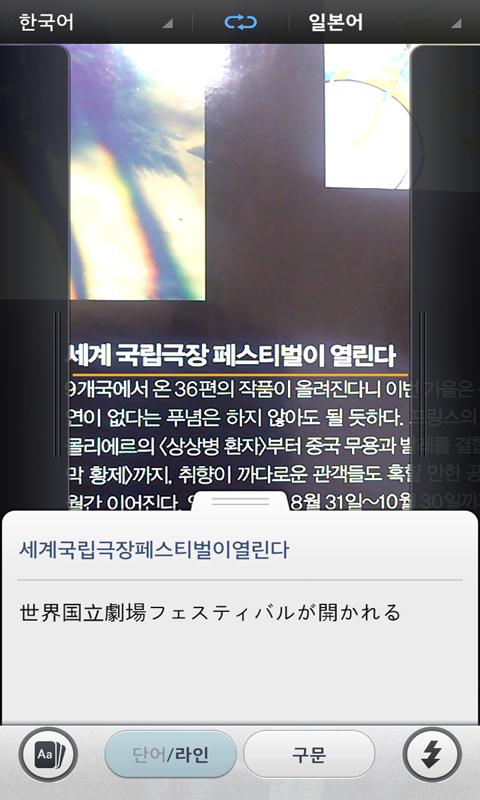 - Provides a translation immediately when the camera is aimed to the chosen word