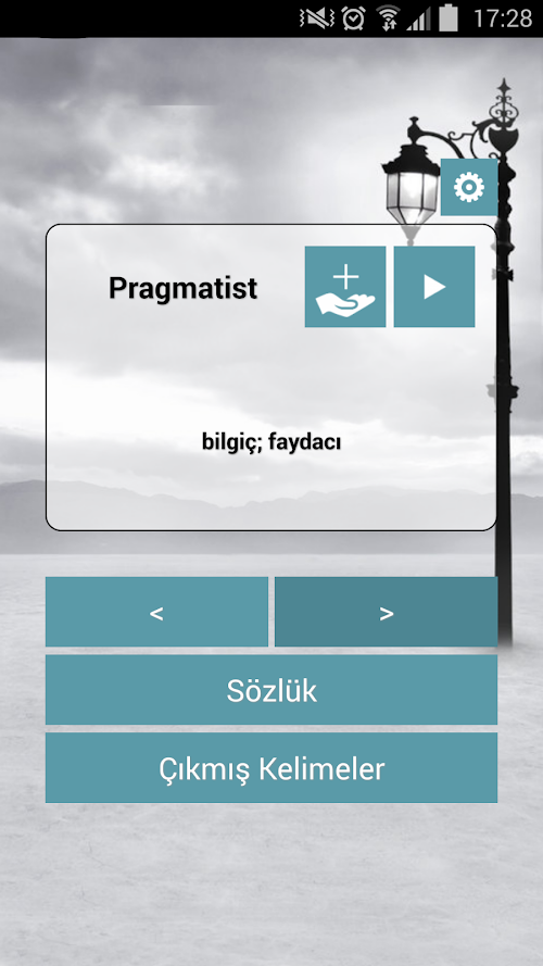 English Turkish flash card and dictionary application. Flash card has 25000 words into logical groups. You can choose any of these groups and see its word list. You can get a number of words that you can specify how many words will be displayed.