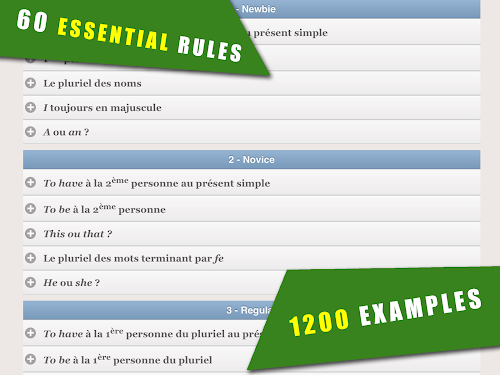 Each level has 5 rules to remember. An algorithm automatically determines the rules which you may already know or not know, and chooses the type of mistake at each step to show it to you, giving priority to those that you have not yet acquired. When the algorithm determines that you have mastered a rule, you earn a star.