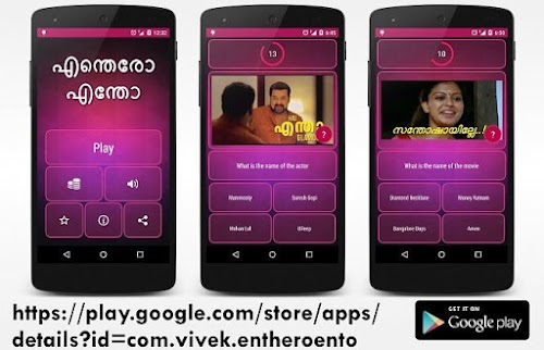 Enthero Ento is the best choice for you.This is a simple application which displays a Malayalam Movie Dialogue and asks a question corresponding to the image.