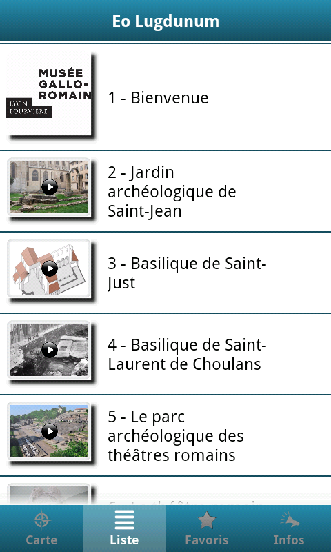 The Romans founded Lugdunum in 43 BC and since then, Lyon has never ceased to exist. Over time, the city center is moved from one place to another. Originally, he was the Fourvière hill, the site of the foundation. This application will help you discover the archaeological sites preserved on the hill and along the Saone, in the heart of the area classified as World Heritage by UNESCO. Guided by the GPS of your device, you can access the older buildings, theaters and Roman baths, the beginning of our era. You will also visit the remains of several buildings of the early Christian era, between the 4th and 7th century baptistery, near the Saint-Jean cathedral churches and sites of Saint-Just and Saint-Laurent Choulans.