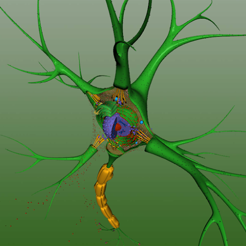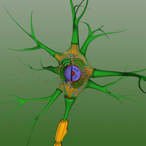 After the 3D Neuron Structure has loaded (may take a few seconds) an info screen will show. Click anywhere on this screen to start an animation loop that will be played forever.