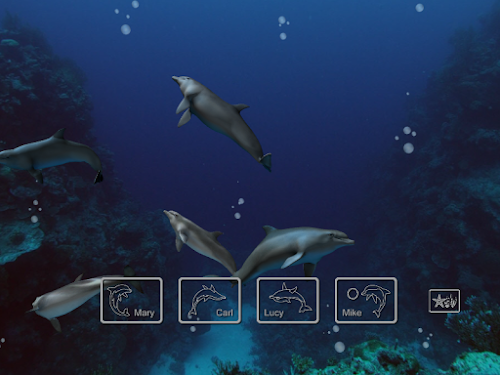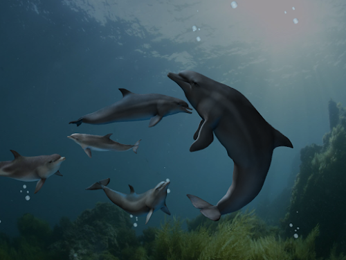 Thanks to EON's powerful 3D engine, which now brings desktop-quality 3D applications to mobile devices, you can experience the wonder of a virtual aquarium full of dolphins. Touch the dolphins and see them respond by swimming faster and making different dolphin sounds. Call on up to 4 dolphins to do a special animation right in front of your eyes. Choose between 3 environments.
