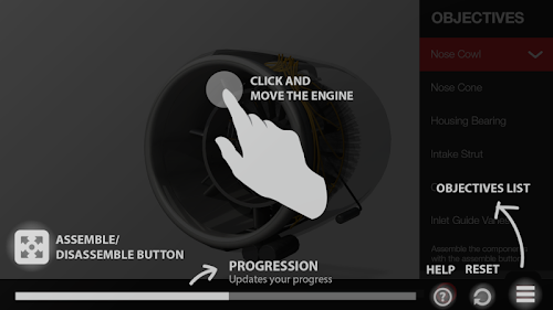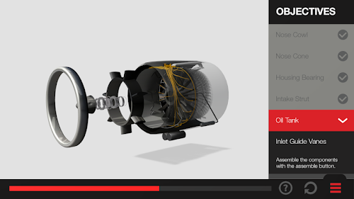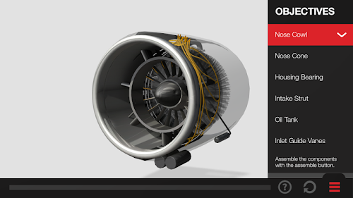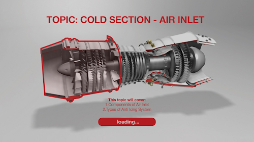 Thanks to EON's powerful 3D engine, which now brings desktop-quality 3D applications to mobile devices, learn to recognize and locate the different parts of the air inlet section of a gas turbine engine, and understand the role they play in the overall operation of the engine.