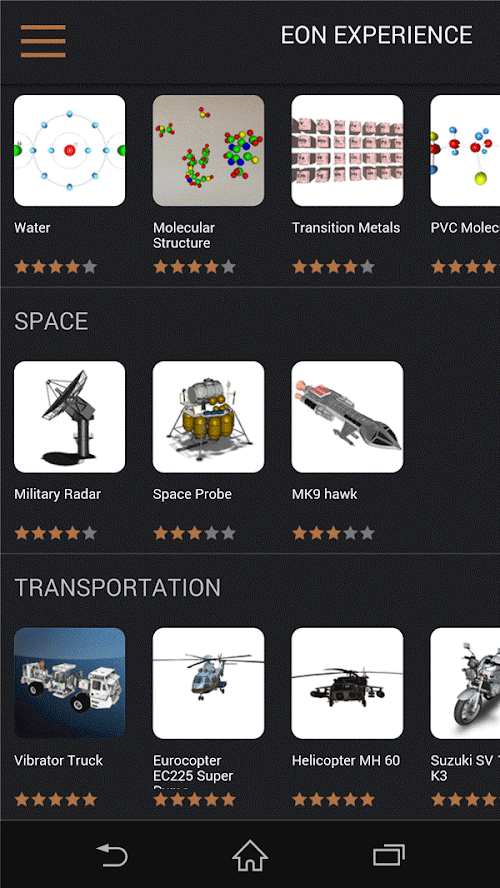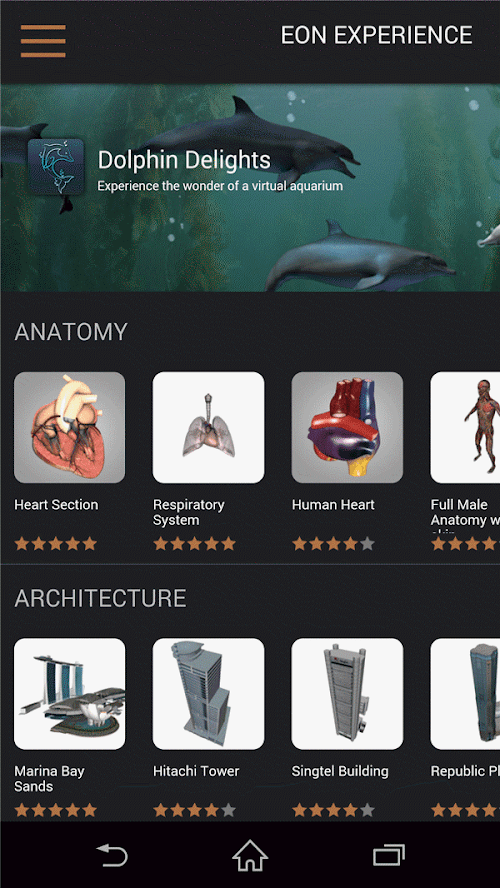 The EON Experience VR is an application similar to Movie and News apps, etc. This means stable internet connection is required to enable proper functionality. EON Experience VR gives you access to a growing number of free AR and VR applications. Browse a growing selection of titles, as new Experiences are added regularly. Content inside the EON Experience VR app will continue to update with more applications,. Simply stay up-to-date and be on the lookout for more applications coming soon!