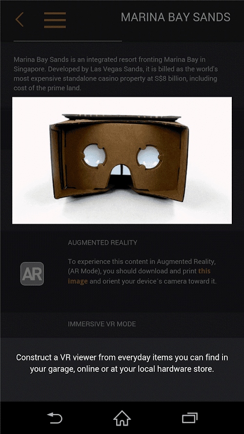 Get the free app and become instantly immersed in a growing selection of AR and VR experiences on your phone. Currently, you can experience your application in three different modes: Normal, AR, and VR.
