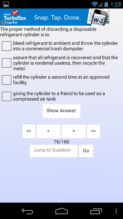 This version of EPA 608 Practice (ads) Android App comes with one universal variant which will work on all the Android devices.