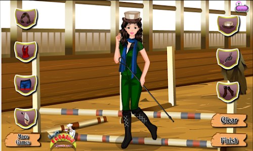 Spring has finally arrived and nothing is more relaxing than a nice horse ride. It doesn't matter if you use your horse for transportation, recreational activities or for competitions you are going to need a nice outfit. In this new dress up games for girls you will have to elp our girl here find just the right clothes. Match her riding equipment to her style and don't forget that safety comes first, so give her a helmet!