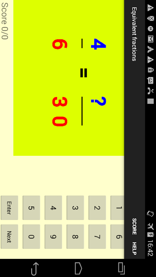 The Android application generates equivalent fractions in which a term is omitted. You have to write the omitted term.