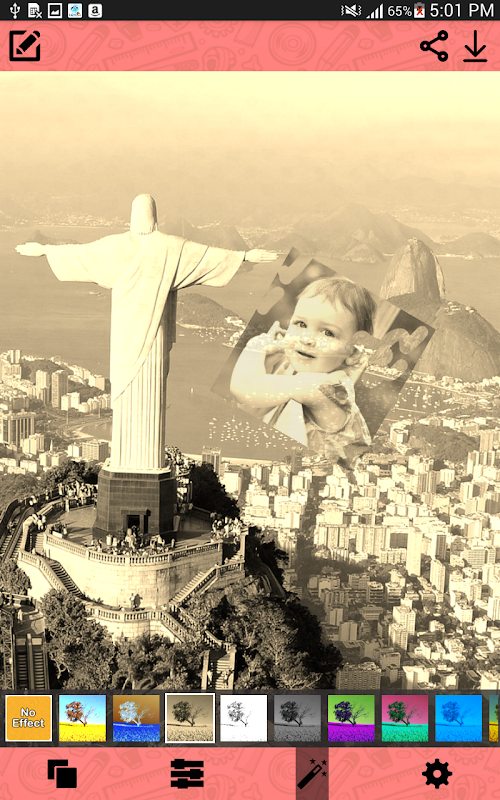 - Apply different photo effects & easily save your final photo and share it different social networks