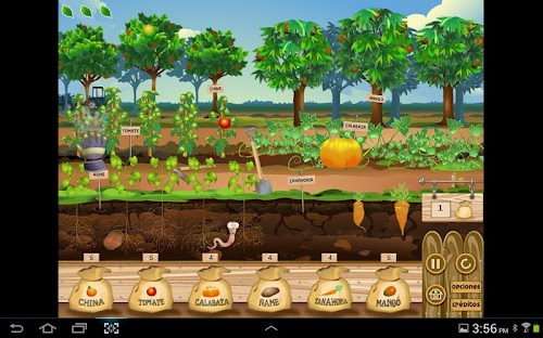 Para jugar, recoge los frutos maduros y colócalos en su saco. Sólo contarán si los colocas en el saco correcto. No recojas frutos que aún no estén maduros, ni frutos pasados. Déjate llevar por el dibujo en el saco para saber cuando están listos para ser recogidos.