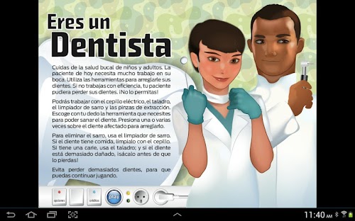 Podrás trabajar con el cepillo eléctrico, el taladro, el limpiador de sarro y las pinzas de extracción. Escoge con tu dedo la herramienta que necesites para poder sanar el diente. Presiona una o varias veces sobre el diente afectado para arreglarlo.