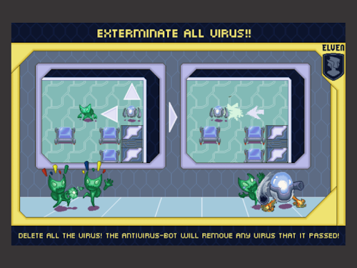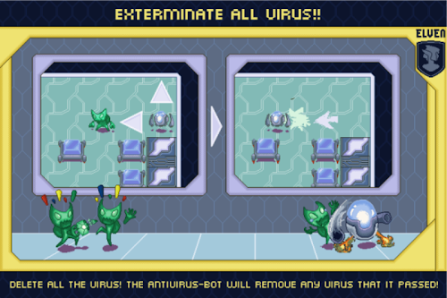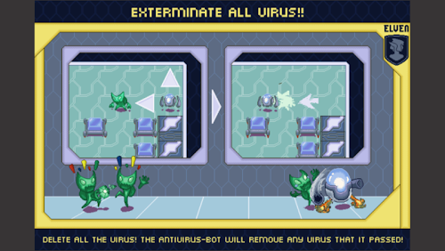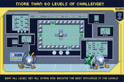 The IT scientists have developed a new anti-virus robot. It can destroy all types of viruses: Trojans, worms and others. Lead the antivirus kernel through the file systems of different computers and clear them from viruses. Use only touch to move. Good luck!