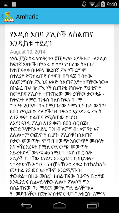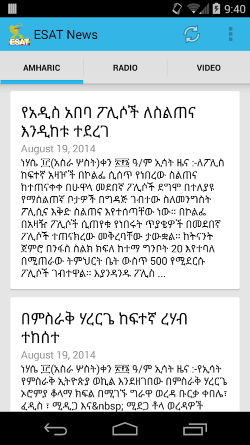 ESAT News is an app that allows users to access radio, video and text news from http://ethsat.com/.