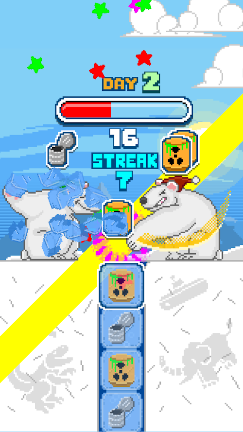 Be environmentally aware! Recycle the trash in the correct sequence by smashing the polluted ice stopping up the fishing hole to free the jumping fish caught under the ice!