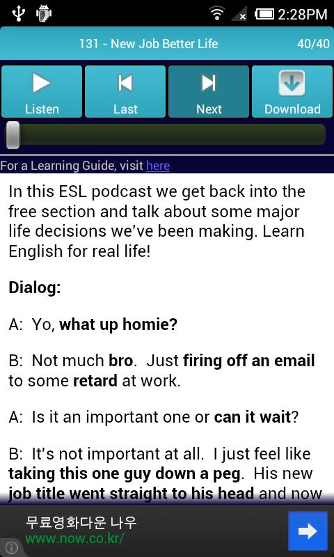 This version of ESL Daily English Android App comes with one universal variant which will work on all the Android devices.