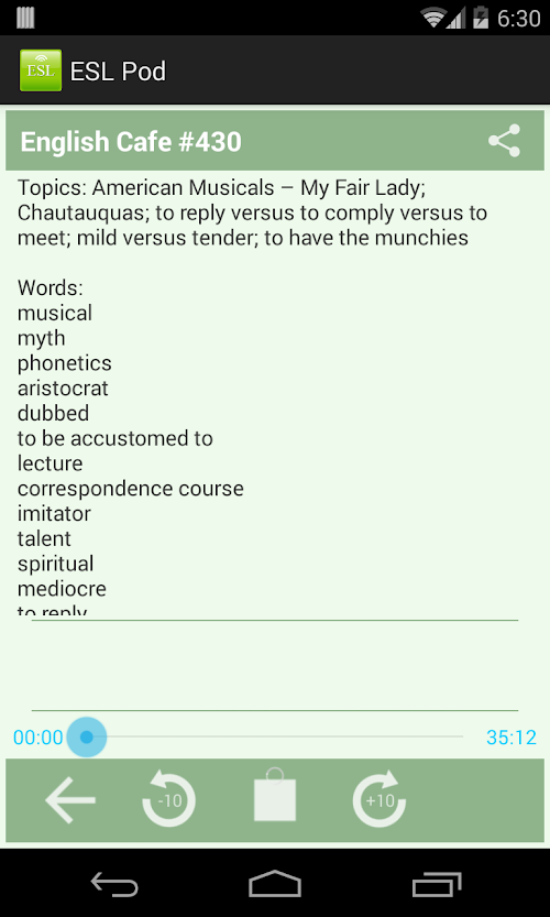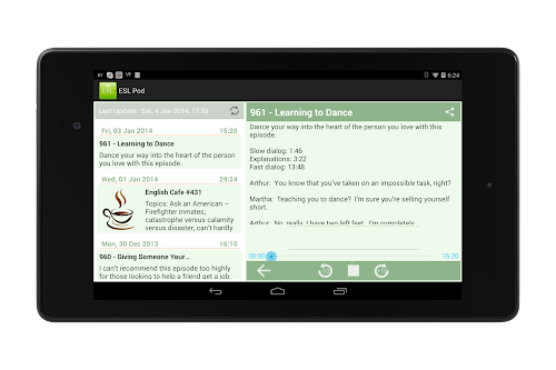 Please note this is NOT the official application from ESLPod and ESLPod( http://www.eslpod.com ) has all copyright about these provided contents.